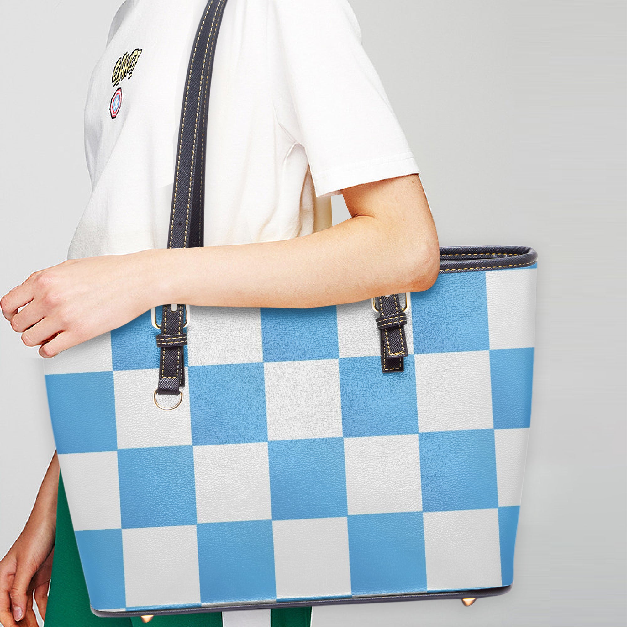Refresh your accessory collection with our checkered tote bag in a vibrant blue and white design. This blue checkered tote bag is crafted from premium twill faux leather, providing a sophisticated textured finish and a sturdy, professional silhouette. Whether you’re heading to a business meeting or a weekend brunch, this large leather purse offers the perfect blend of bold boutique style and everyday functionality.