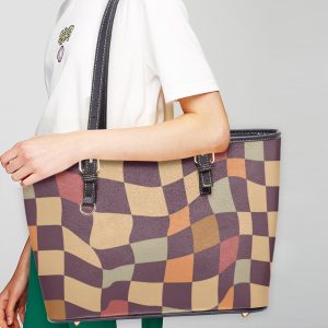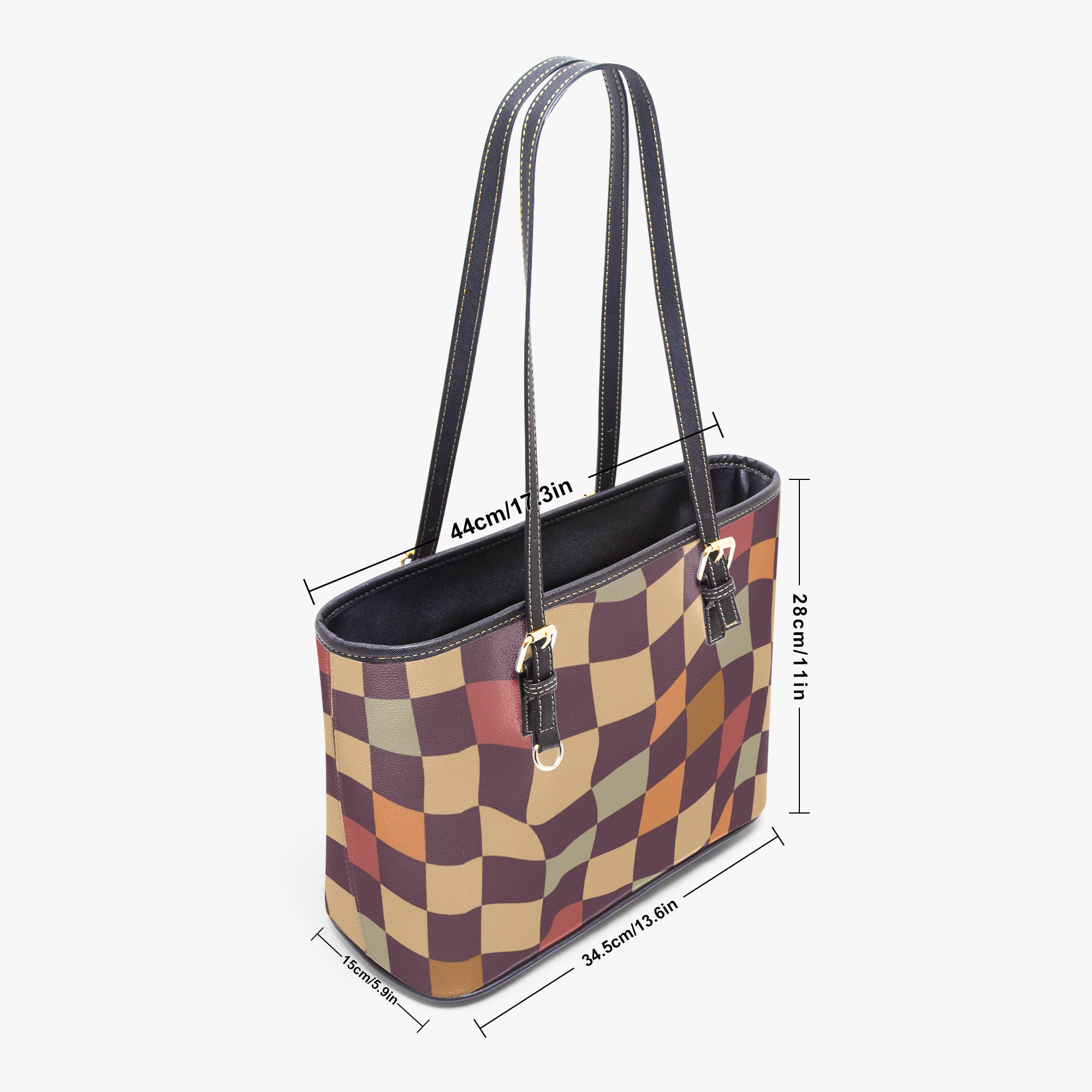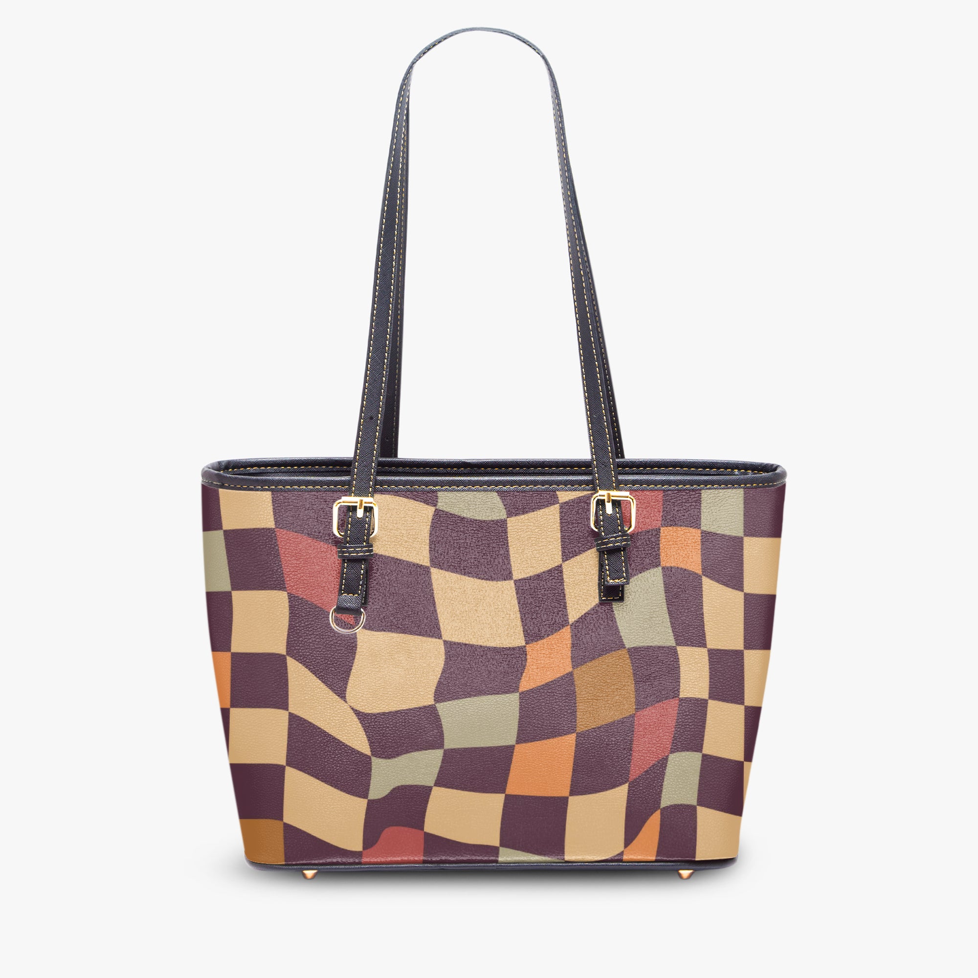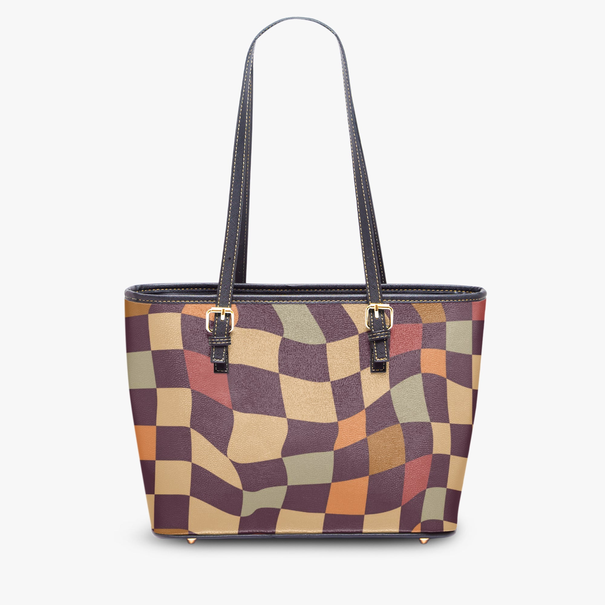Checkered Tote Bag | Large Retro Wavy Warped Twill Faux Leather Purse