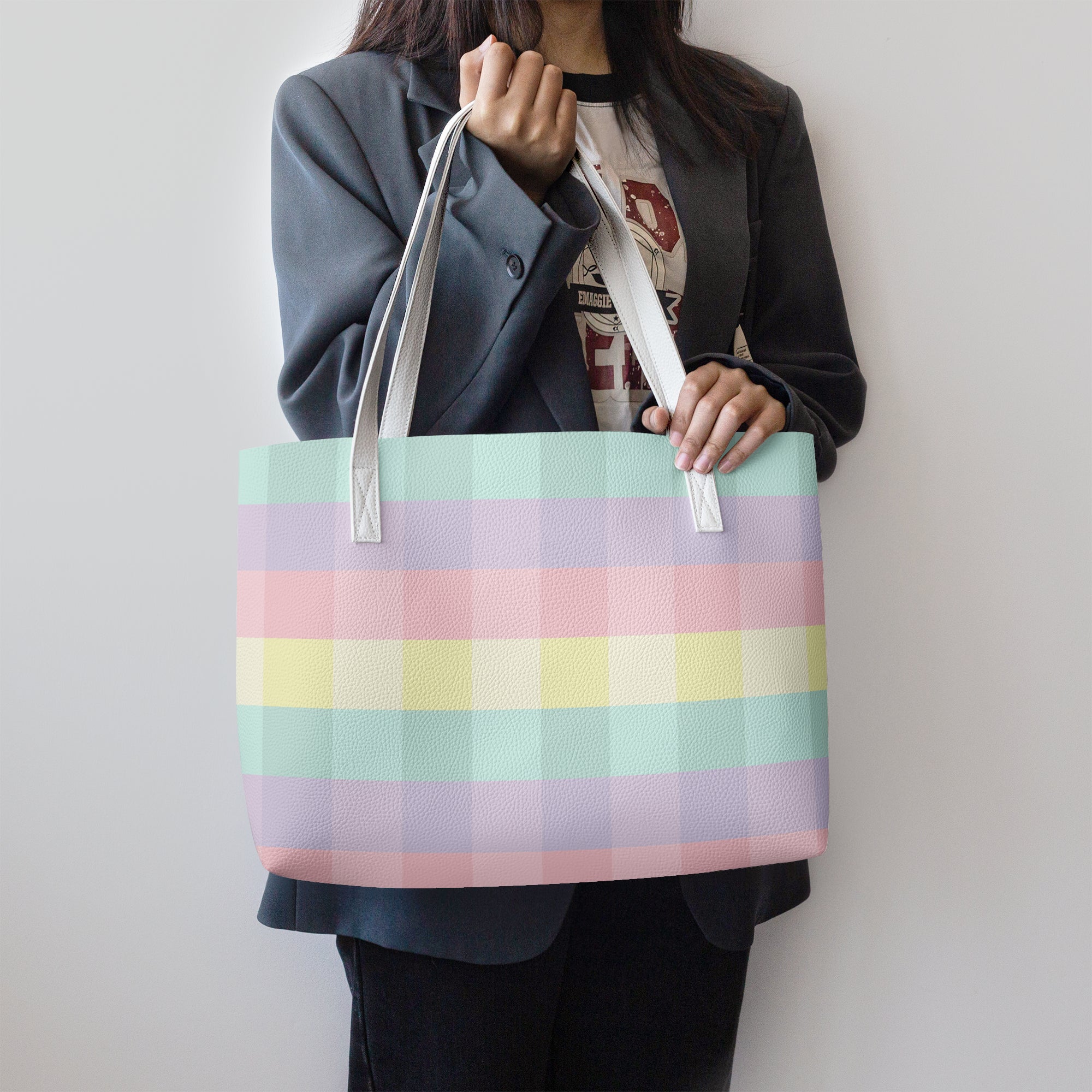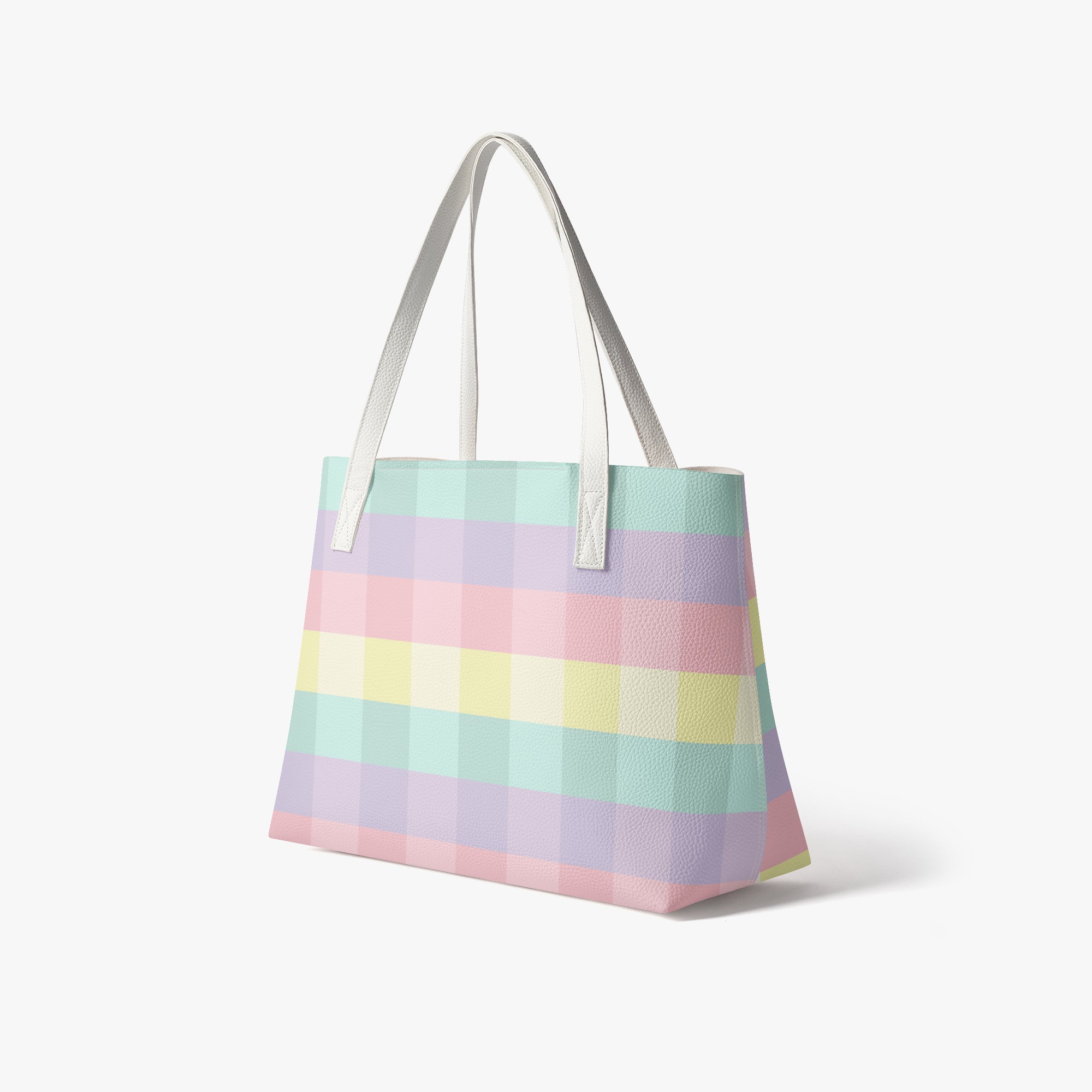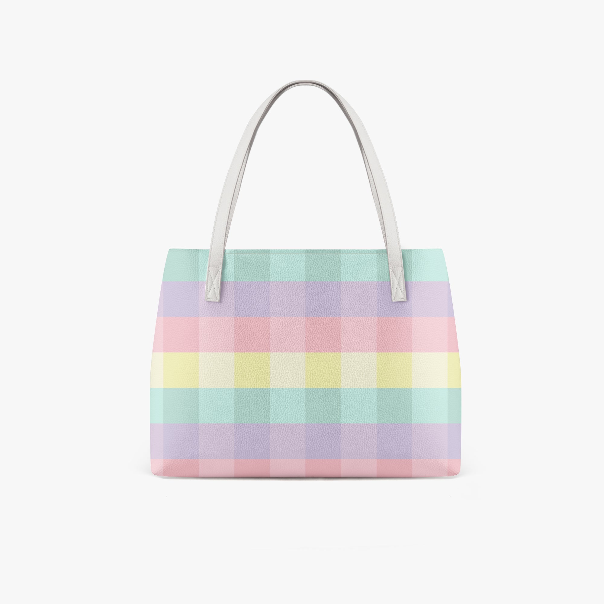 Embrace a softer aesthetic with our checkered tote bag in a beautiful pastel rainbow gingham print. This pastel checkered tote bag features a soothing palette of mint, lavender, and soft pink, making it the perfect accessory for those who love a whimsical, boutique look. Crafted from high-grade, waterproof PU leather, this durable shoulder bag ensures your belongings stay safe and dry while you carry a bit of sunshine with you wherever you go.