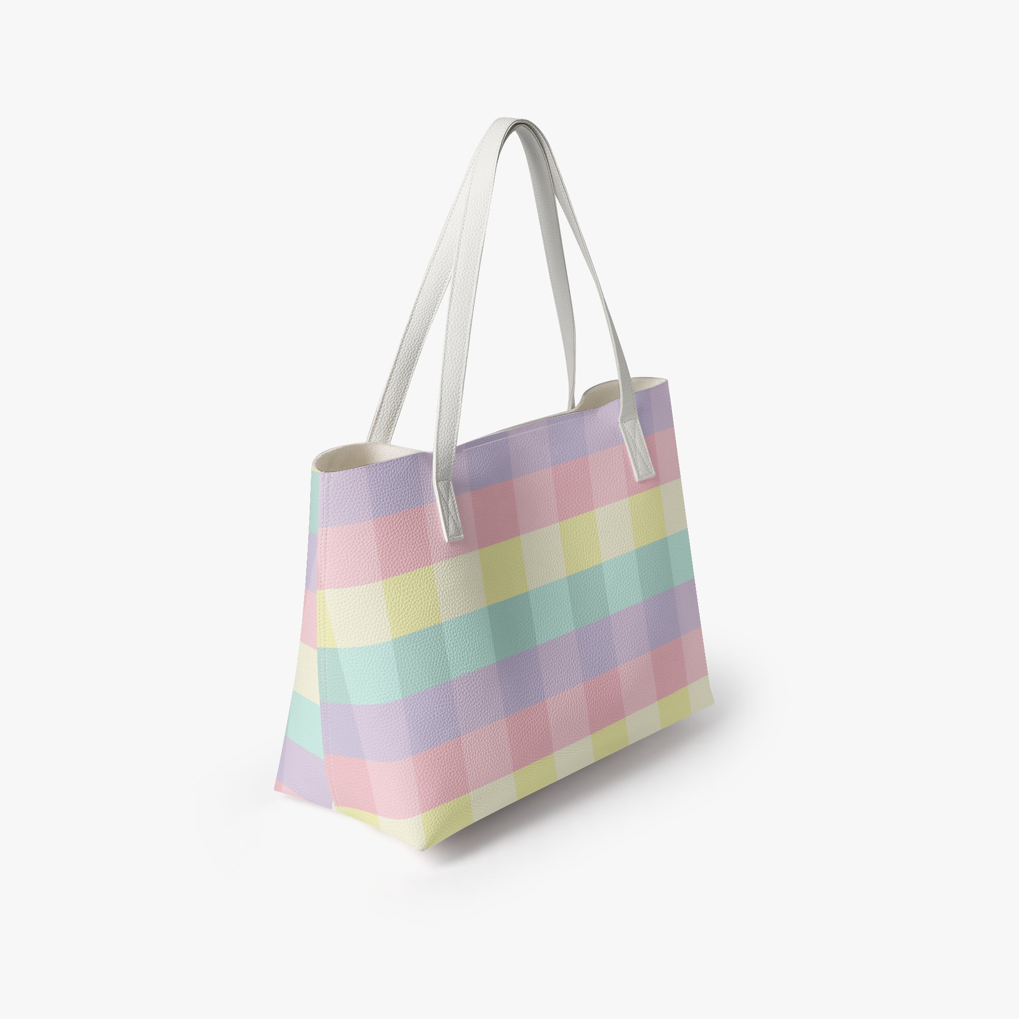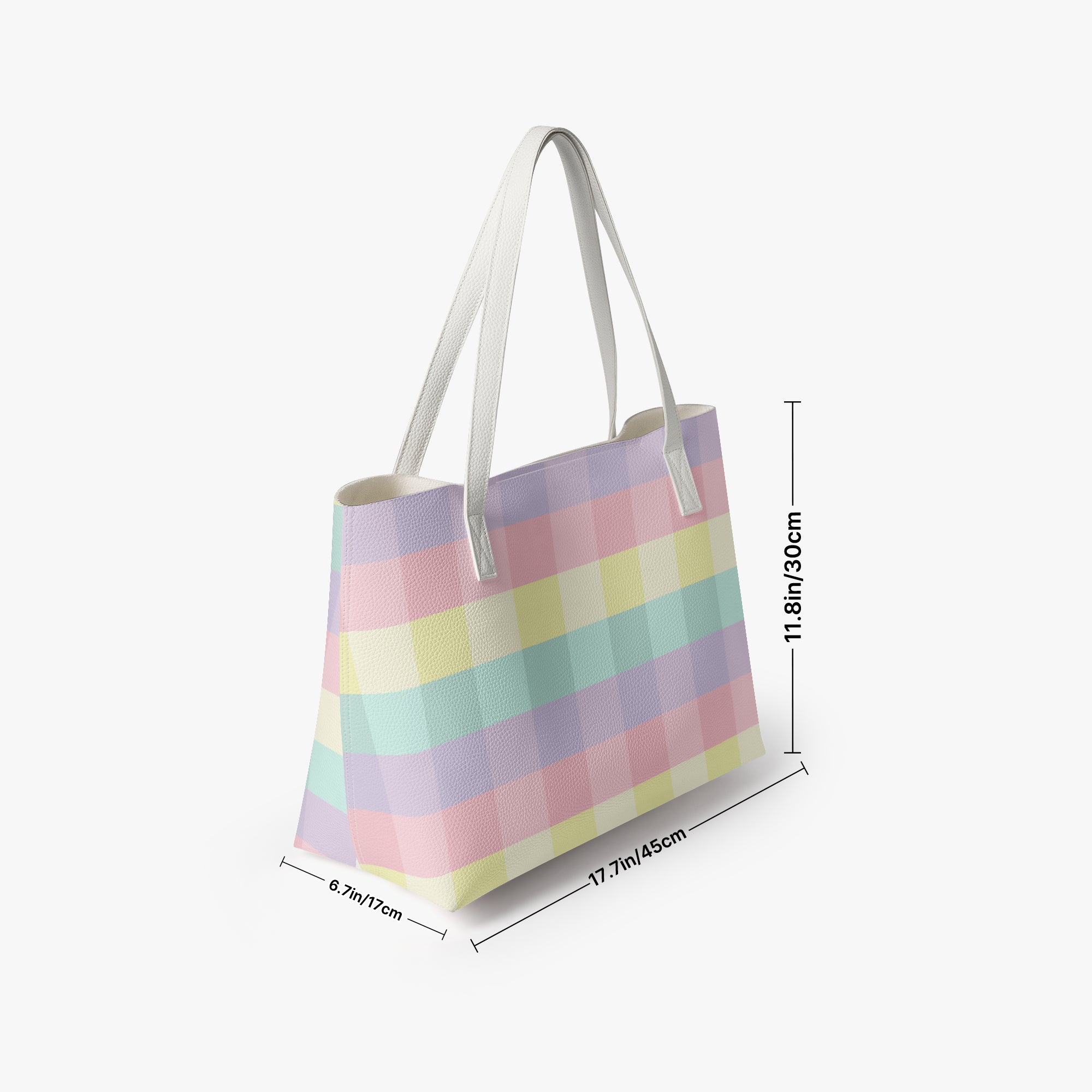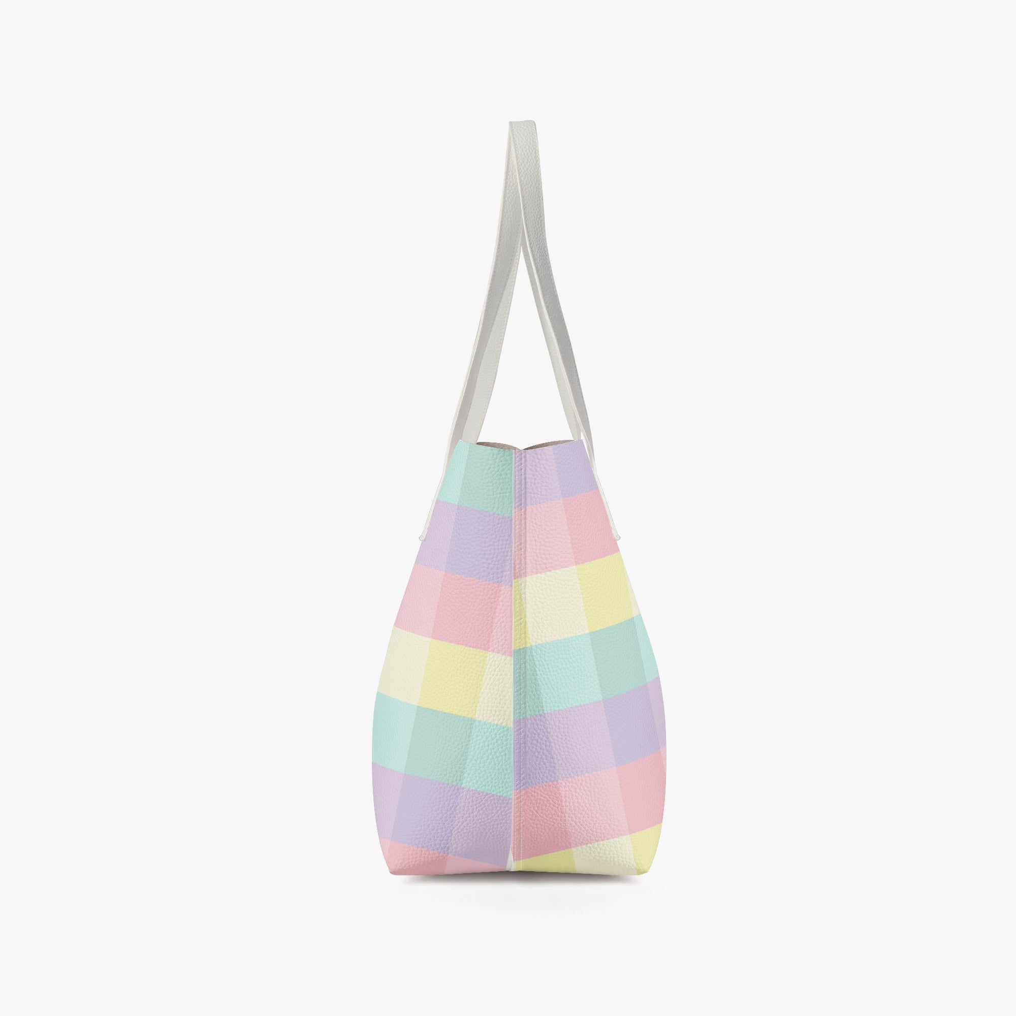 Embrace a softer aesthetic with our checkered tote bag in a beautiful pastel rainbow gingham print. This pastel checkered tote bag features a soothing palette of mint, lavender, and soft pink, making it the perfect accessory for those who love a whimsical, boutique look. Crafted from high-grade, waterproof PU leather, this durable shoulder bag ensures your belongings stay safe and dry while you carry a bit of sunshine with you wherever you go.